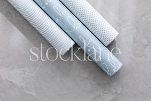 Vertical stock photo of light blue wrapping paper.