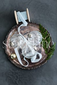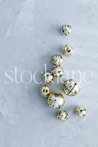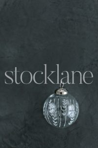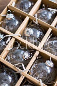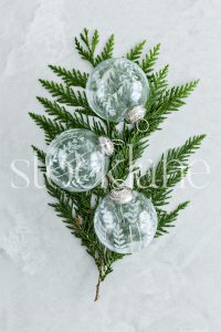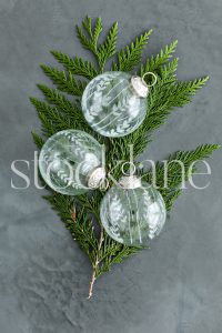 Vertical stock photo of glass Christmas ornaments.