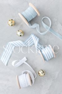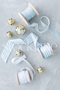 Vertical stock photo of Christmas light blue ribbons.