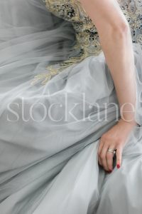 Vertical stock photo of a woman in a light blue dress