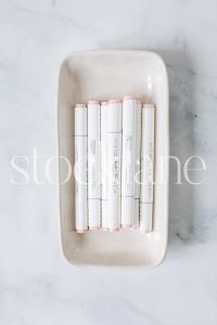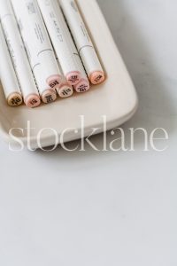 Vertical stock photo of pink toned markers.