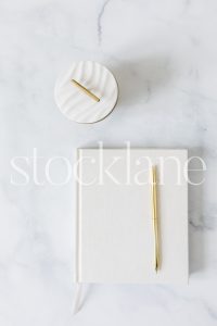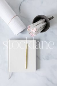 Vertical stock photo of designer neutral desktop.