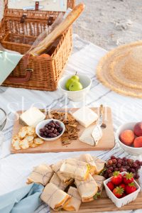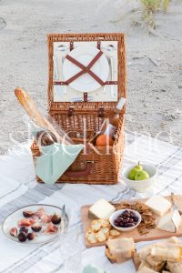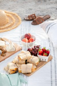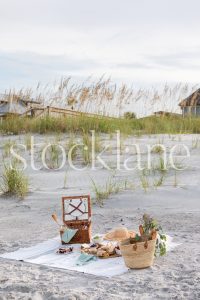 Horizontal stock photo of summer beach picnic.