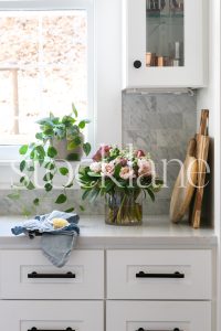 Vertical stock photo of stylish kitchen.