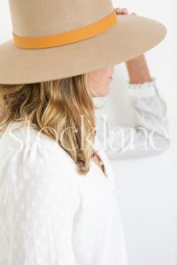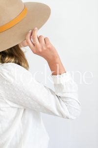 Vertical stock photo of a woman with a hat.