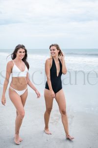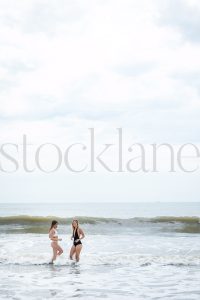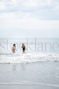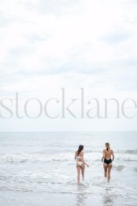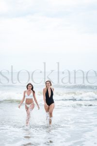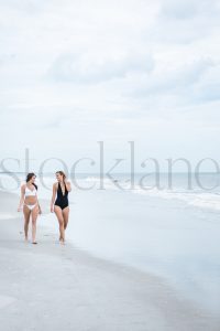 Vertical stock photo of two women at the beach.