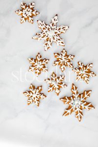 Read More about 3127_StocklaneVertical stock photo of snowflake-shaped gingerbread cookies on a marble countertop.