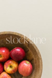 Vertical photo of a bowl of apples on a neutral background.