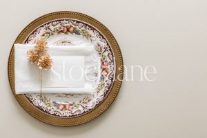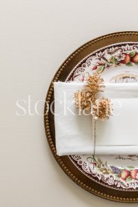 Vertical stock photo of a Thanksgiving place setting.