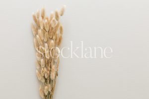 Horizontal stock photo of neutral colored rabbit tail sprigs on a neutral background.