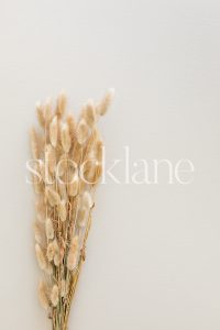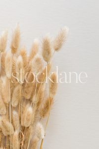 Vertical stock photo of neutral colored rabbit tail sprigs on a neutral background.