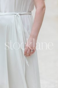 Vertical photo of a woman wearing a white dress.
