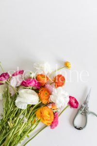 Vertical stock photo of a bouquet of flowers and sheers