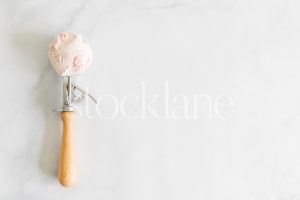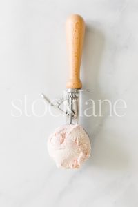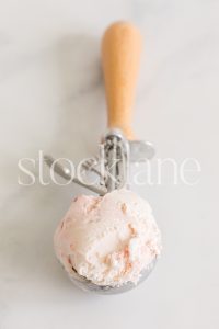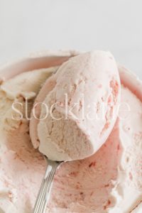 Vertical stock photo of a scoop of strawberry ice cream.