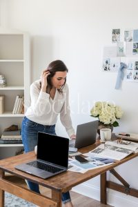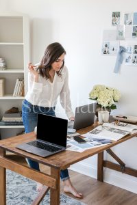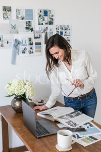 Vertical stock photo of a woman working at her desk.