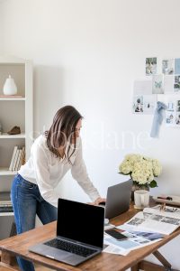 Vertical stock photo of a woman working on her laptop.